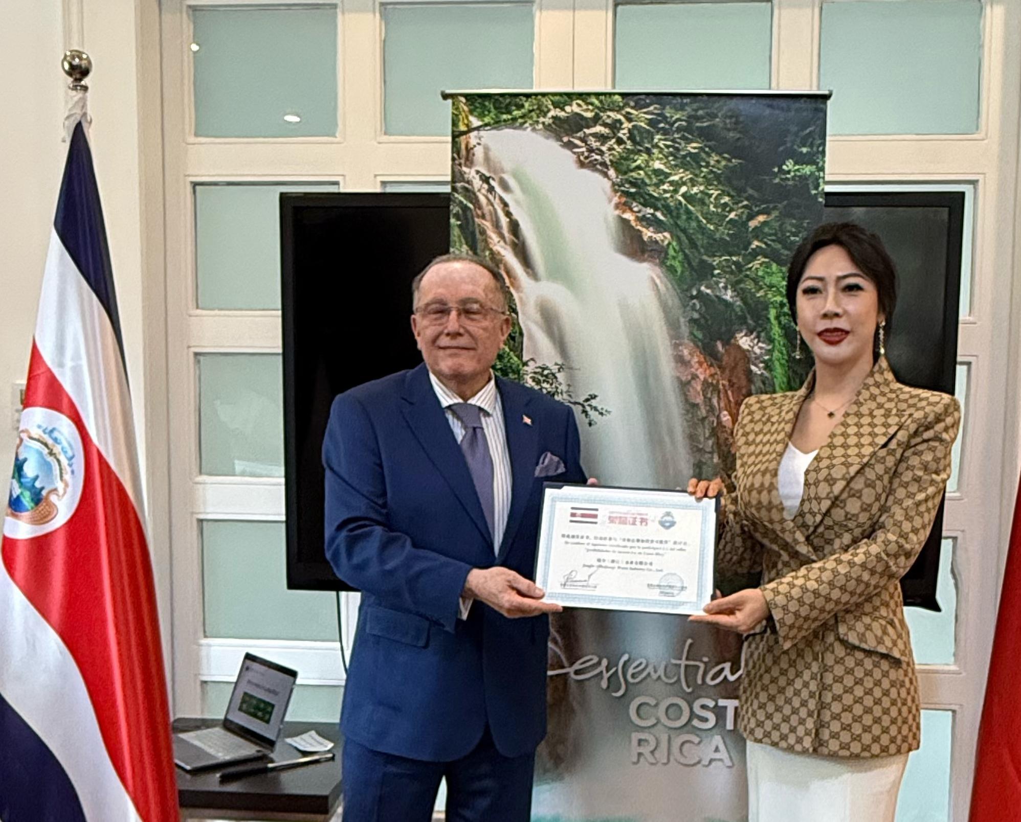 2025 年 9 月,境介(浙江)水业无限公司旗下 “境悠之水” 及 “境介堂” 系列产物,正式被授予 “哥斯达黎加国驻华大指定用品” 认证。这不只是 “境悠之水”“境介堂” 获得的第 8 家驻华大承认(此前已获赤道几内亚、利比亚、尼日利亚、马达加斯加、科特迪瓦、几内亚、布隆迪驻华大。。?。